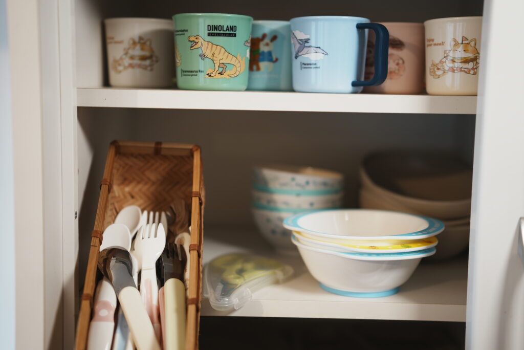 Children’s plates, Child-sized fork & spoon, Meal bibs, Food cutter (scissors), Child toilet seat, Baby high chair